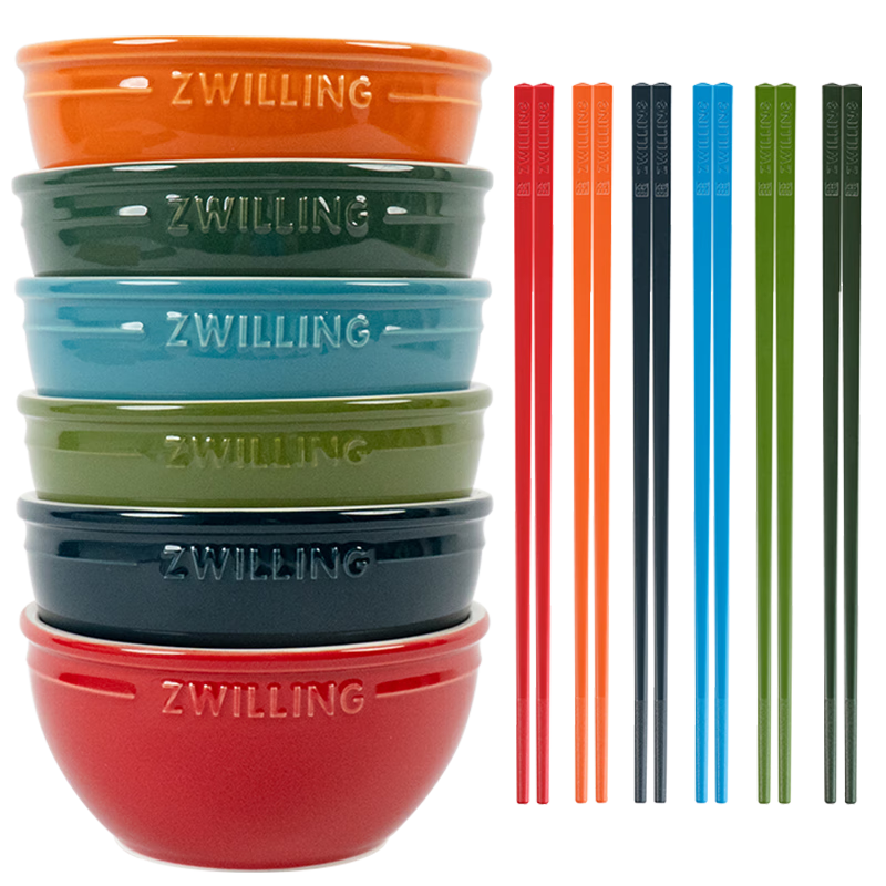 双立人(ZWILLING)碗筷套装家用饭碗汤碗面碗陶瓷甜品碗多色筷子餐具整套 彩色碗6只+彩色筷6双 共计 12件套