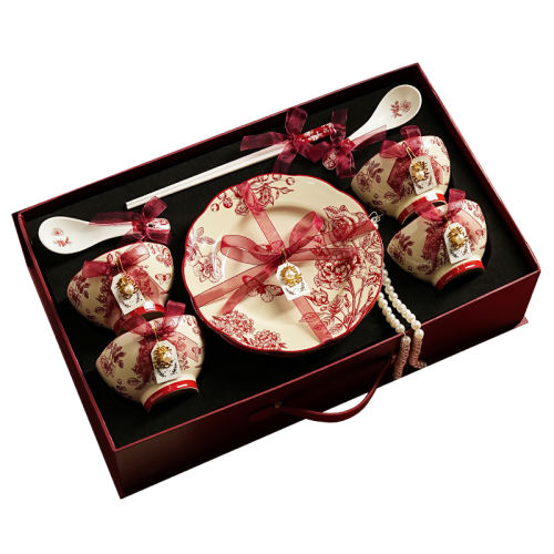 【臻品礼盒】-美满团圆婚礼餐具 高档碗碟餐具陶瓷新婚礼物送新娘红色碗盘筷套装乔迁新居结婚礼盒