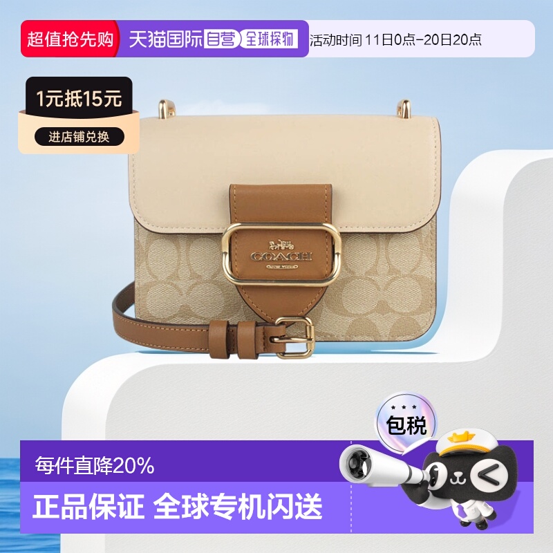 浅卡其拼色仓库1 通用 香港直邮COACH 奥莱款女士PVC配皮单肩斜挎包