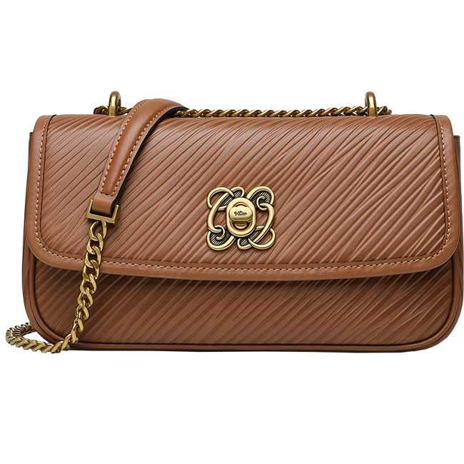 金利来 女包单肩包牛皮水波纹雕花锁扣女士链条斜挎腋下包