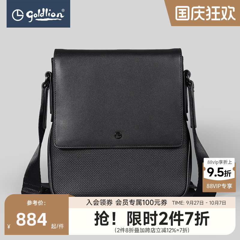 【头层牛皮】金利来2024春季新款单肩皮包男商务竖款斜挎包日字包
