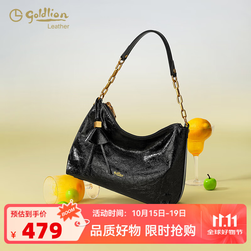 金利来秋季新款单肩包百搭腋下包通勤斜挎包hobo女包送妈妈女朋友礼物 黑色