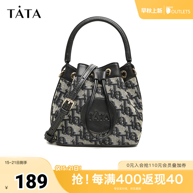 黑色 Tata他她七夕礼物复古老花水桶包奥莱秋季手提斜挎包包NB337CX3