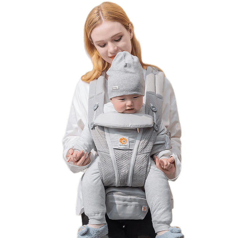 egobaby婴儿背带前抱式抱娃神器二美国狗小月龄宝宝腰凳前后两用夏季透气 Breze透气款-灰色+腰包+防风帽