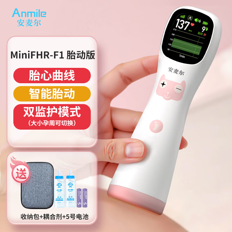 安麦尔胎心监测仪监护孕妇家用无辐射听诊器孕期胎儿胎动多普勒监 F1家用监护款:9周可测/智能胎动/数曲双监护模式