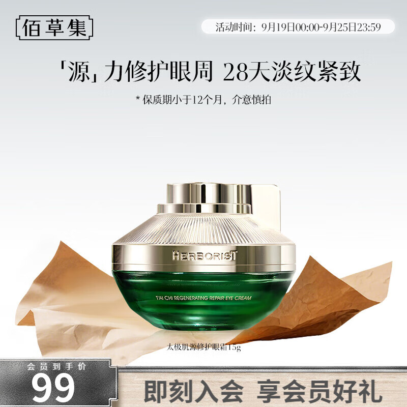 佰草集眼霜女 太极肌源啵啵眼霜 紧致眼周淡化眼纹修护眼部护理 太极肌源修护眼霜15g(老版)