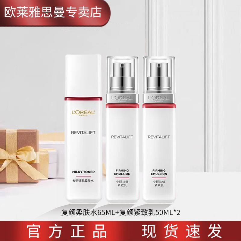 百亿补贴:欧莱雅 L'OREAL复颜专研抗皱乳液女性礼物化妆护肤品补水保湿淡纹视黄醇水乳套装 复颜柔肤水65ml+复颜乳液50ml*2