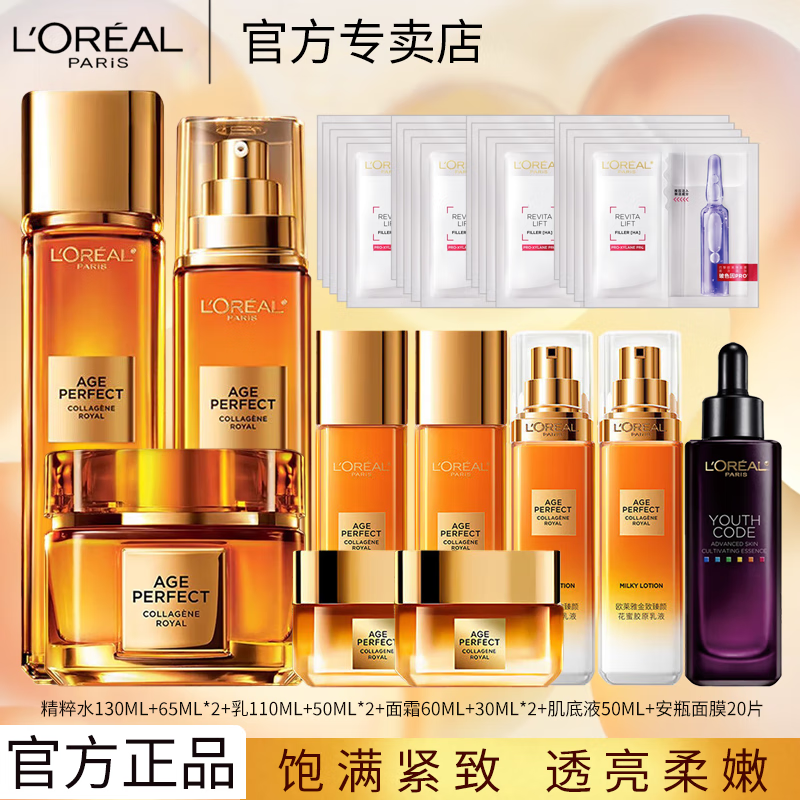百亿补贴:欧莱雅 L'OREAL花蜜胶原水乳套装小蜜罐面霜抗皱女士化妆品护肤品情人节礼物礼盒 花蜜奢养豪华套装