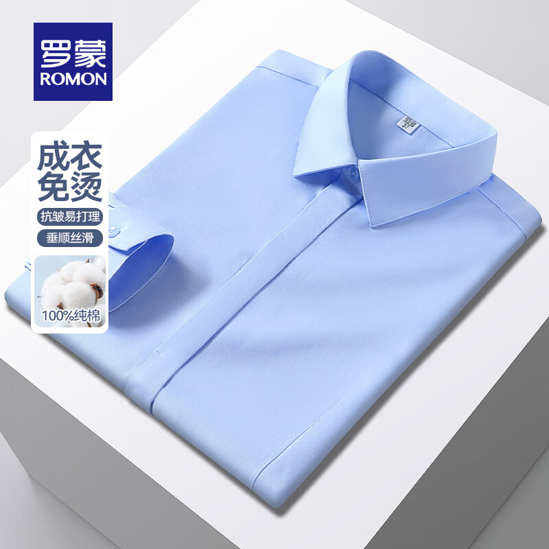罗蒙(ROMON)DP免烫衬衫女2025新款商务正装纯棉易打理百搭职业工装衬衣 2C360ZA蓝色【长袖款】 39
