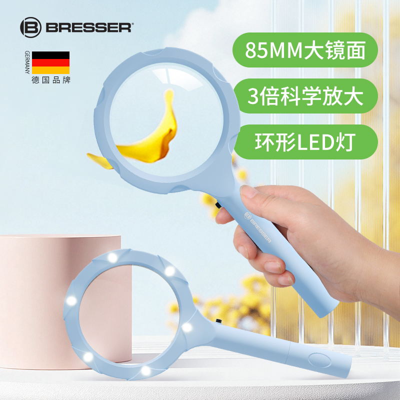 磨砂粉 德国Bresser带灯放大镜高清高倍