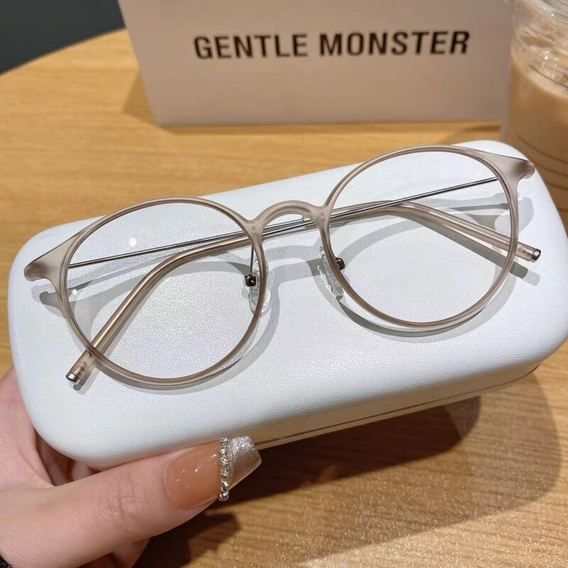Erilles红书小圆框TR90超轻不压鼻可配度数散光近视镜 磨砂茶 161非球面镜片