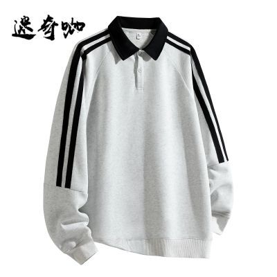 百亿补贴:迷奇咖 美式POLO领情侣款春秋季卫衣设计感条纹休闲宽松运动卫衣