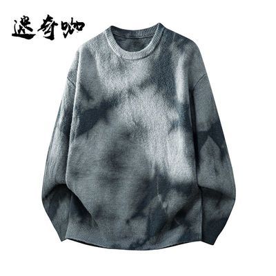 百亿补贴:迷奇咖圆领毛衣秋冬季慵懒风扎染打底针织衫宽松加厚保暖内搭卫衣