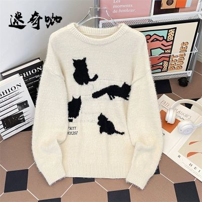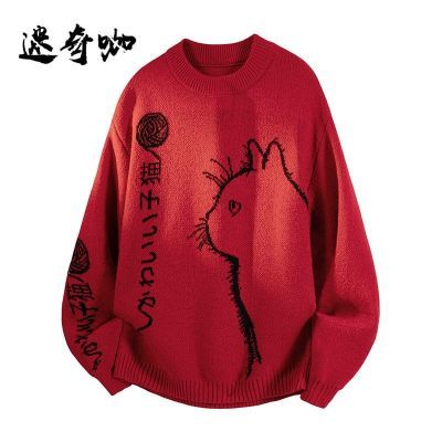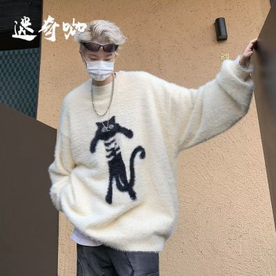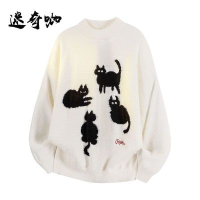 百亿补贴:迷奇咖卡通猫咪毛衣男秋冬潮牌美式复古宽松慵懒风内搭针织衫上衣