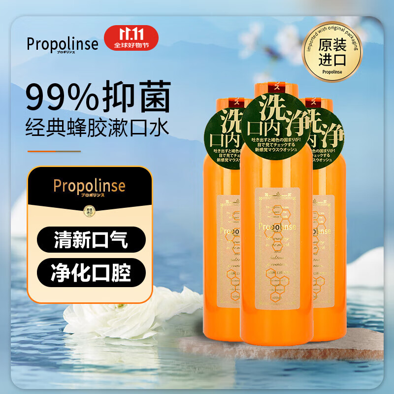 【自营】日本Propolinse比那氏漱口水600ml*3瓶蜂胶杀菌清新进口
