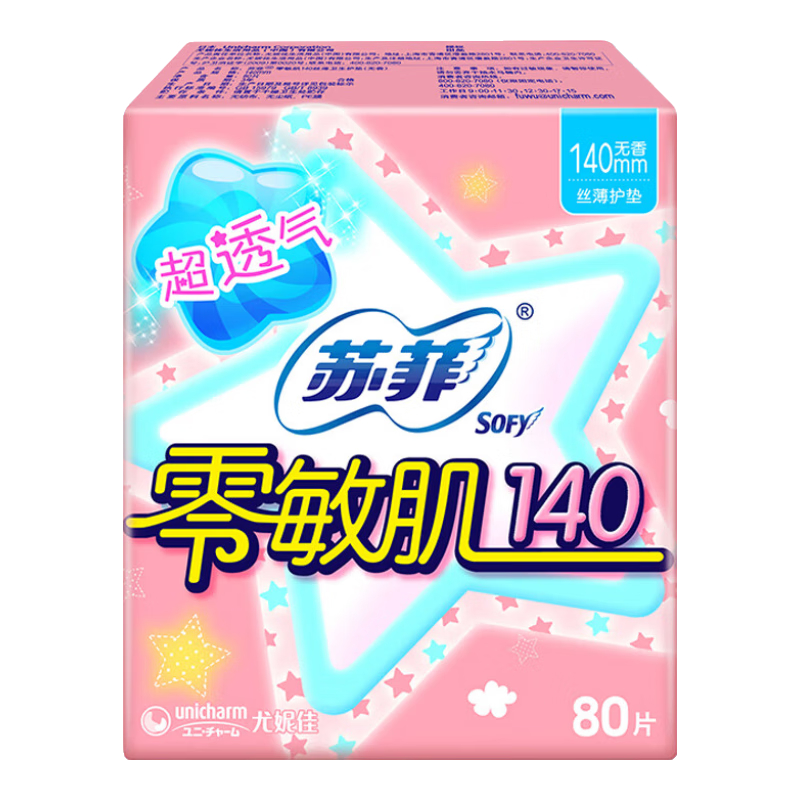 SOFY/苏菲 零敏肌无香型 卫生巾 护垫 140mm*80片