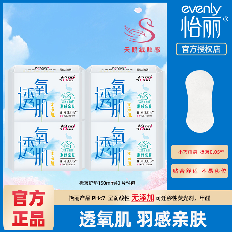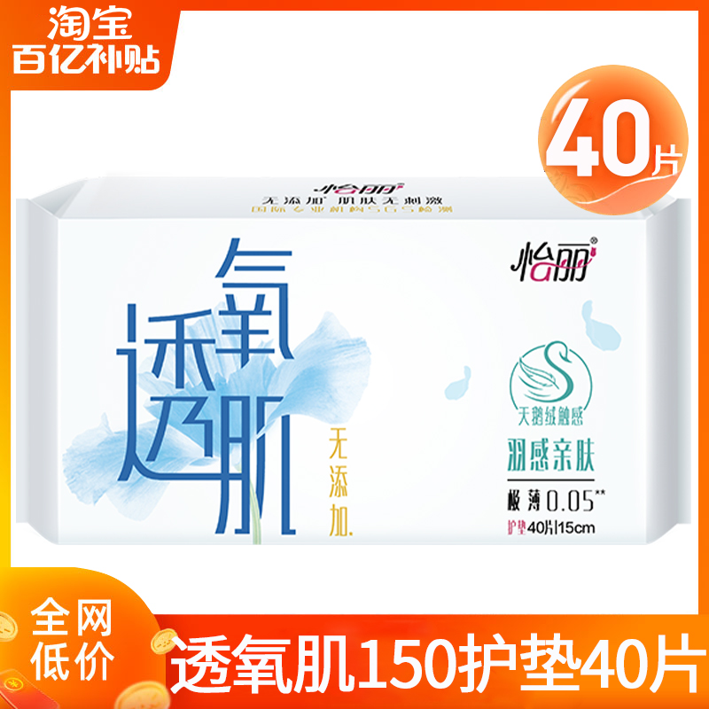 怡丽卫生巾护垫透氧肌超薄亲肤透气150mm40片6包敏感肌官方正品