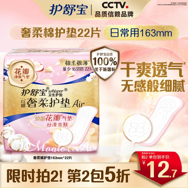 护舒宝奢柔棉气垫卫生巾护垫量少日用163mm22片姨妈巾京东自营官方旗舰