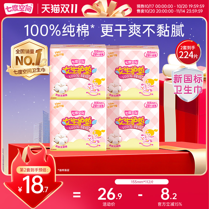 【新国标认证】七度空间女生护垫少女迷你超薄透气卫生巾姨妈巾