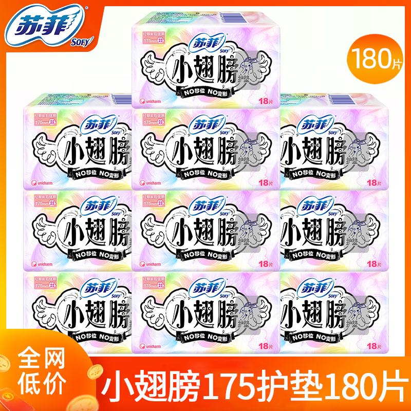 苏菲护垫卫生巾小翅膀175mm小护翼迷你姨妈女整箱官方旗舰店正品