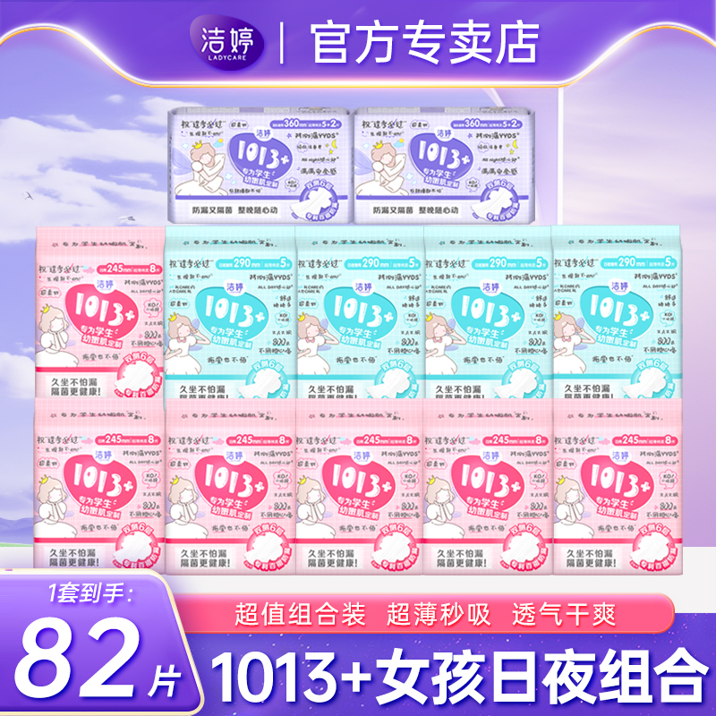 护垫60片 洁婷卫生巾女孩日用夜用组合超薄棉柔透气姨妈巾女官方旗舰店正品