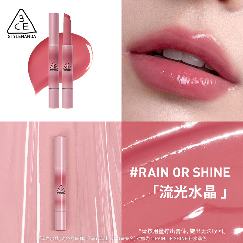 百亿补贴:3CE融光唇冻细管镜面唇膏唇釉唇蜜唇彩口红女礼物 粉水晶色RAIN OR SHINE