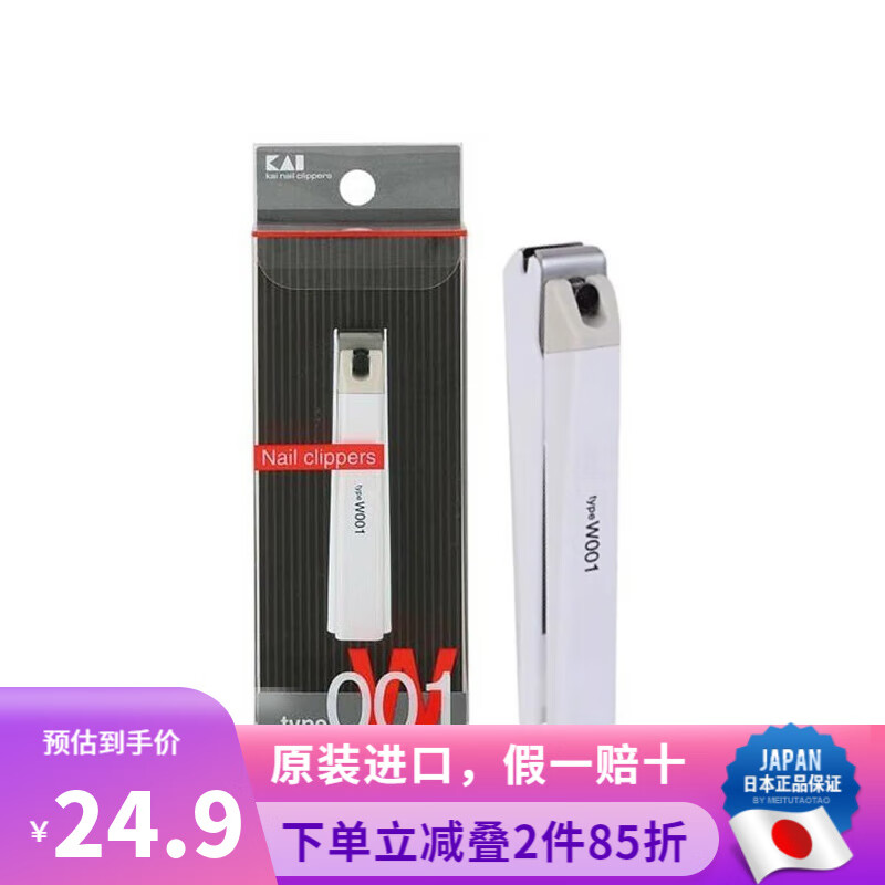貝印日本原装 贝印指甲刀指甲钳指甲剪美甲工具安全防飞溅设计 TYPE001白色指甲钳 直线刃 1个
