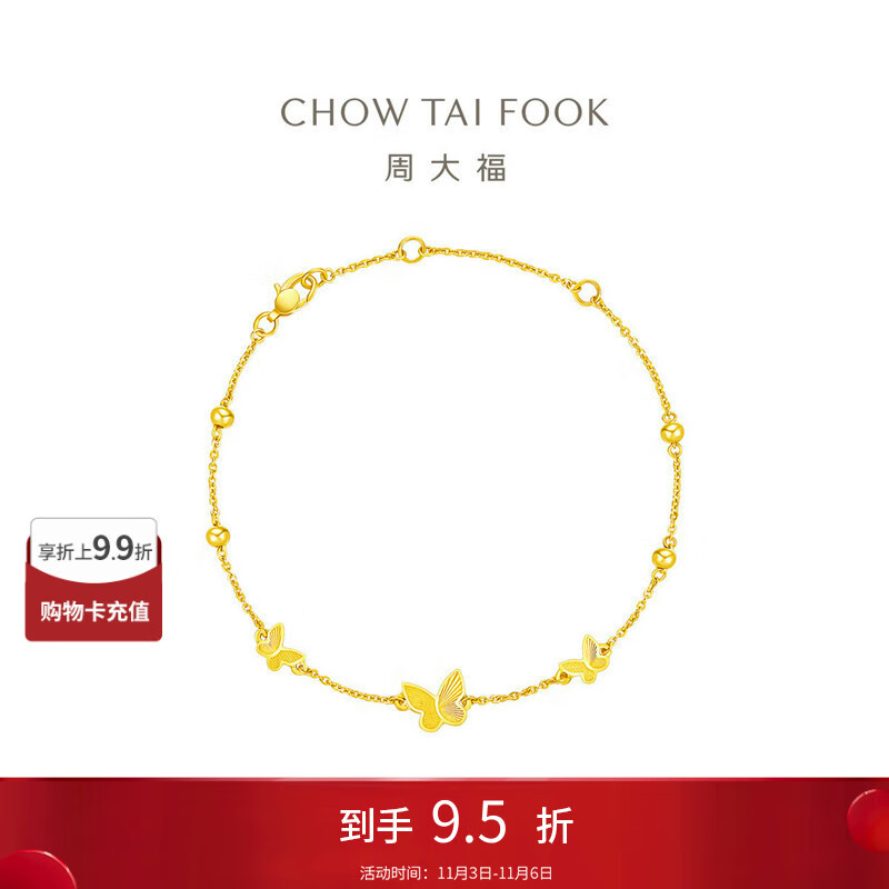 周大福 精美蝴蝶黄金手链(工费320)15cm约3.45g EOF1211
