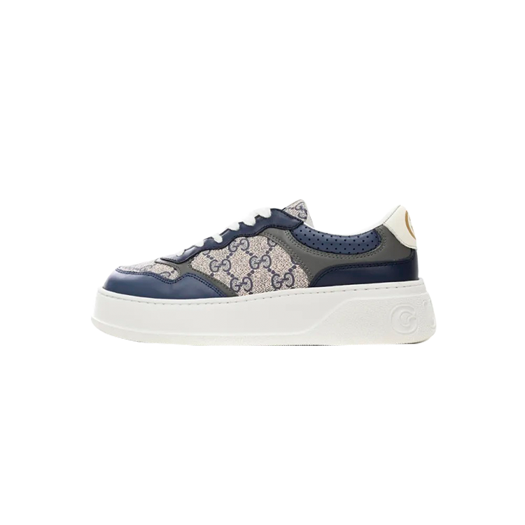 GUCCI 【织带厚底饼干鞋】男士蓝色老花拼接低帮运动复古休闲鞋