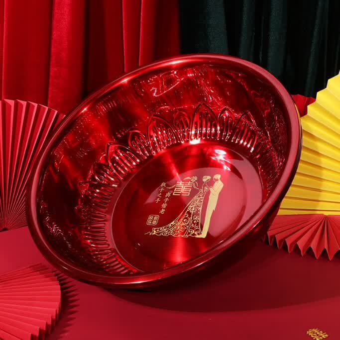 搪瓷脸盆婚庆搪瓷喜庆用品红色结婚礼纪喜庆脸盆新娘陪嫁嫁妆红盆鸳鸯喜盆乐骏维 新款酒红高边佳人有约脸盆 材质【不锈钢】