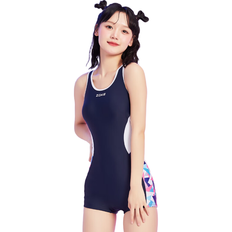 洲克(ZOKE)泳衣女平角连体竞技123501420 深兰/玫兰白菱形花 L