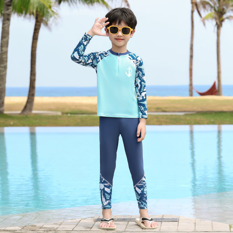 佑游儿童泳衣男童分体长袖长裤防晒中大童游泳衣四件套34089蓝色3XL