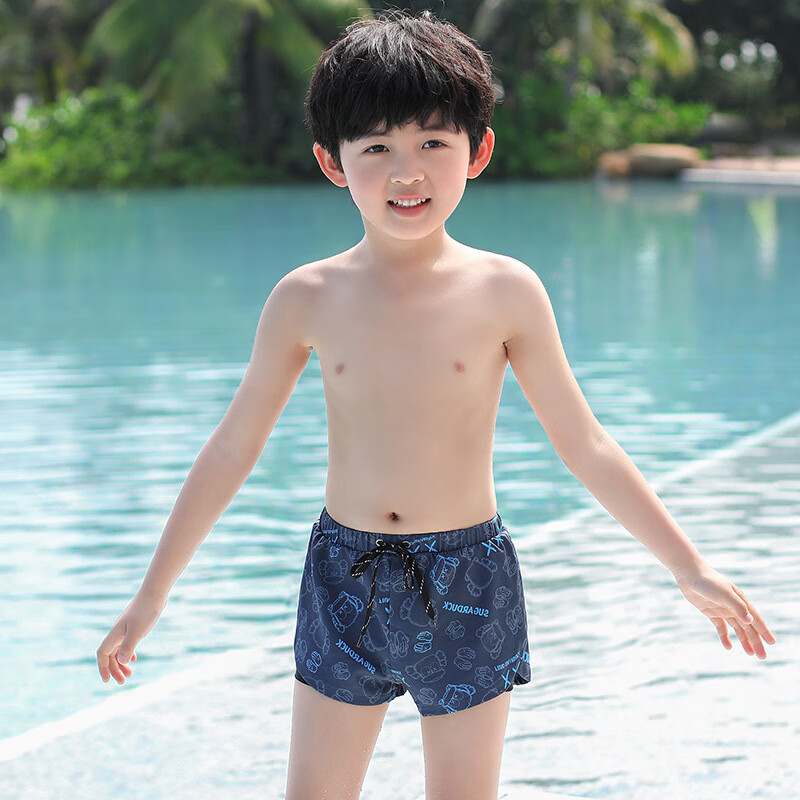 佑游儿童游泳裤男孩速干泳衣中大童平角防尴尬三件套52003蓝色小熊5XL