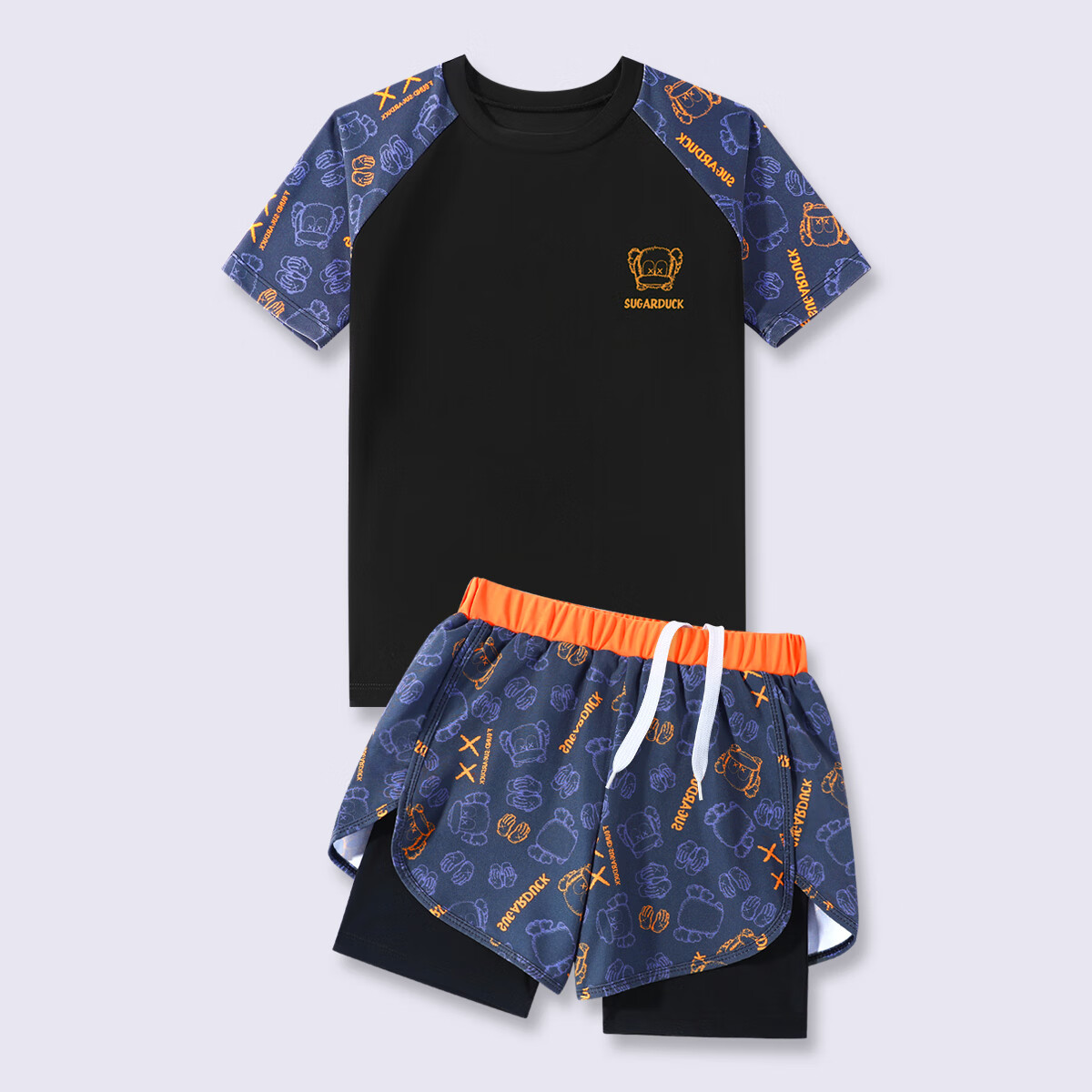 佑游儿童泳衣男童分体中大童防晒温泉双层泳裤游泳五件套33094蓝色5XL