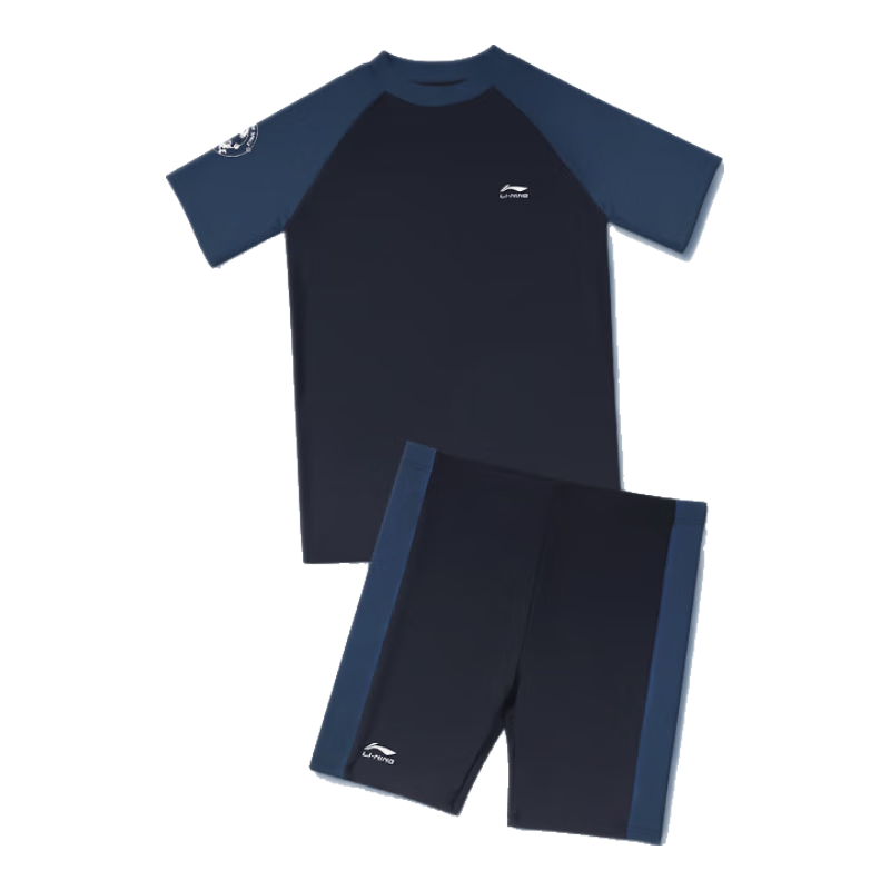 李宁(LI-NING)儿童泳衣男孩中大童游泳衣青少年分体泳衣泳镜泳帽套装34-67蓝150