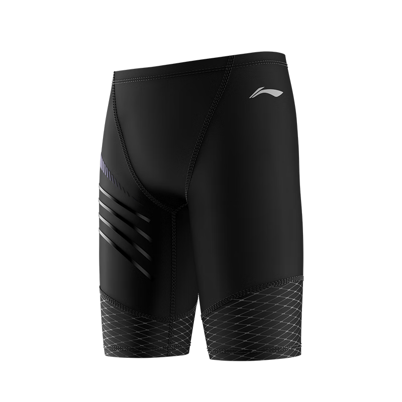 李宁(LI-NING)泳裤男五分及膝游泳裤专业抗氯耐磨速干大码男士泳装0021黑XXL