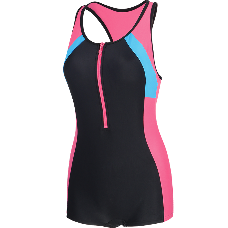 英发(YINGFA)休闲平角游泳衣女 纯色拼接拉链款修身显瘦运动泡温泉连体泳衣