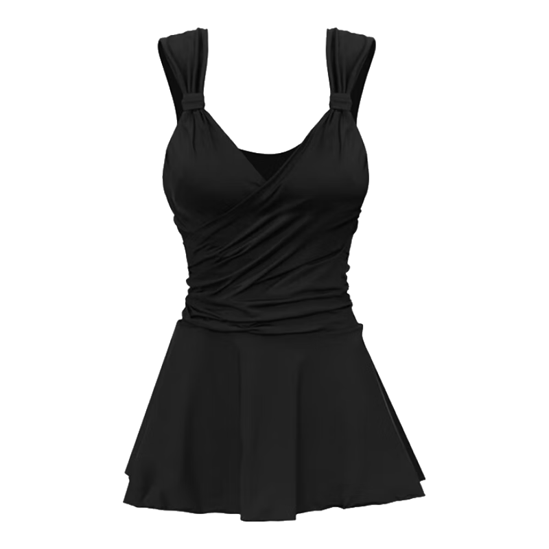 范德安(BALNEAIRE)小黑裙系列连体泳衣女大码温泉显瘦保守裙式微胖遮肉游泳 60771 L