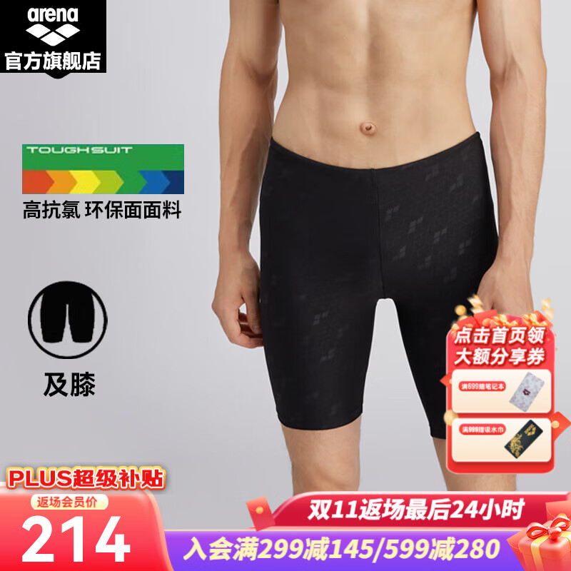 阿瑞娜(arena)男士泳裤及膝专业运动暗纹高弹冲浪泳衣防尴尬温泉游泳裤 黑色(BLK) L