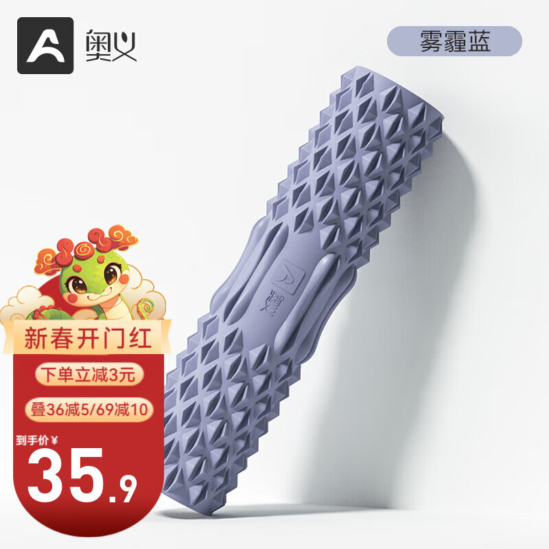 奥义 泡沫轴肌肉放松滚轴按摩棒运动健身狼牙棒高密度抗压瑜伽柱套装 雾霾蓝-限.时.抢-环保无味