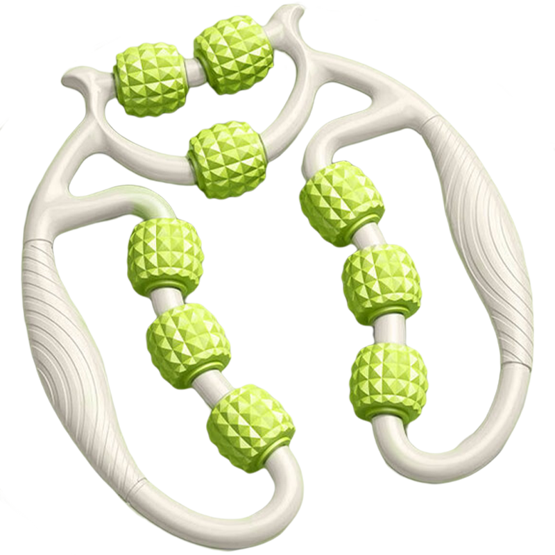 杜威克腿部按摩滚轮狼牙棒肌肉放松轴瑜伽柱9轮夹腿器健身塑形套装果绿