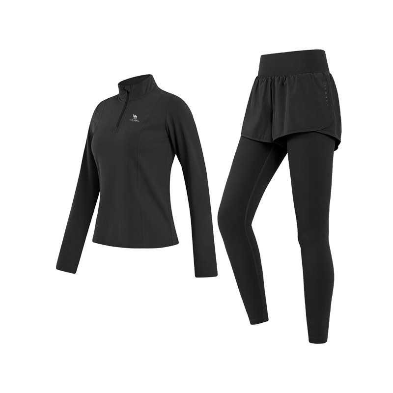 骆驼(CAMEL)瑜伽套装女加绒运动服两件套 Y23CA4L0016A 幻影黑 L