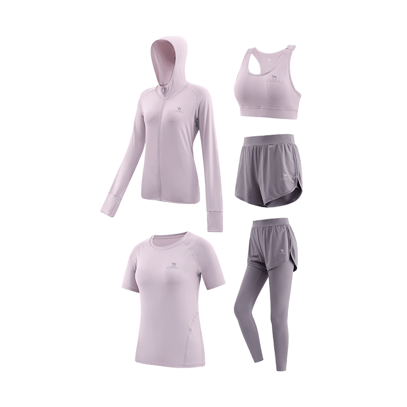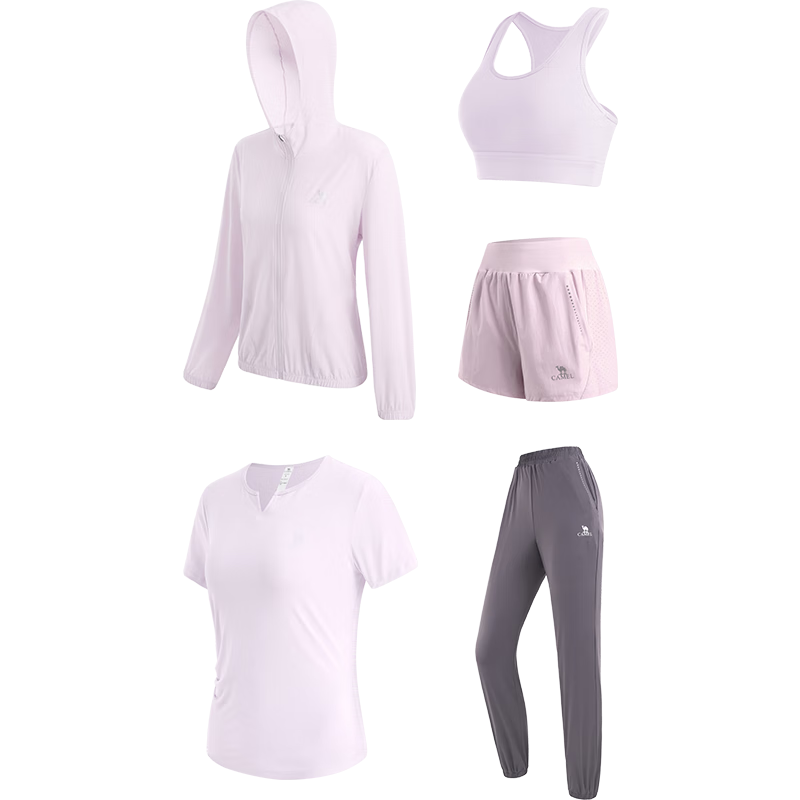 骆驼(CAMEL)运动套装女防晒跑步瑜伽服五件套 Y23BA0L6058 雪柔紫/烟雾紫 XXL