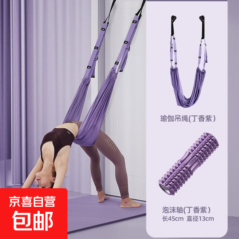 空中瑜伽吊绳家用伸展带挂门上训练器专业拉力墙绳倒立下腰一字马 套装2【紫色】下腰训练器+泡沫轴