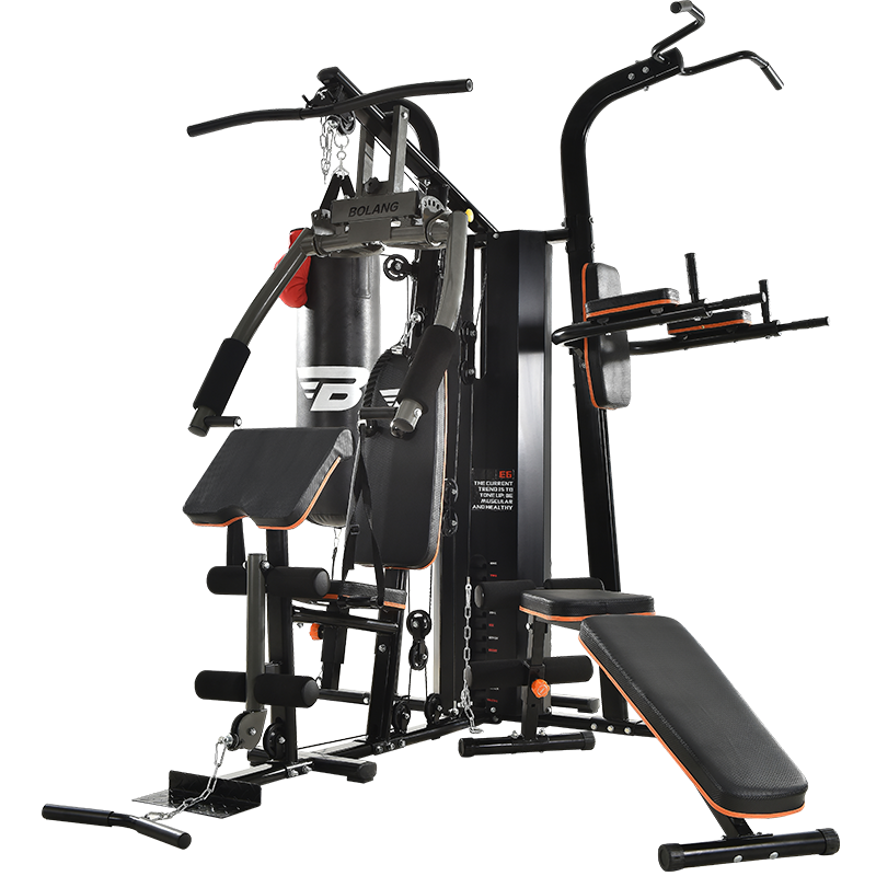 美力德 健身器材家用套装运动器械多功能健身器材 家用三人站综合训练器 全新款(黑橙色)-包上楼包安装