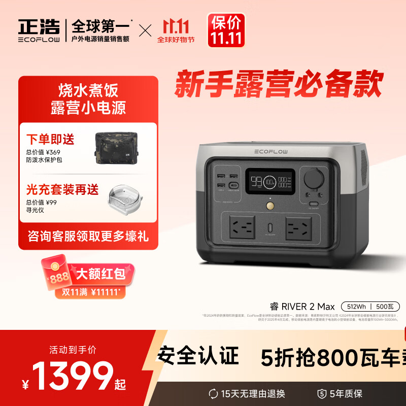 ECOFLOW正浩【车载露营】户外电源快充太阳能充电宝512Wh 500W磷酸铁锂户外移动电源220v 500W 512Wh 睿2Max【官方旗舰款】