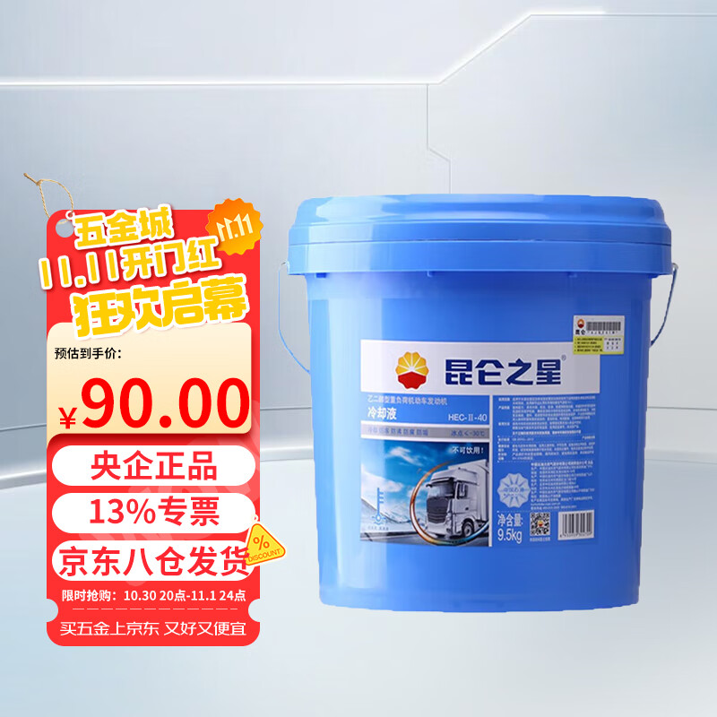 昆仑(KunLun)HEC-II-40 昆仑防冻液 -40℃ 多效 乙二醇重负荷发动机 冷却液 9.5kg/桶 水箱宝 绿色 四季通用