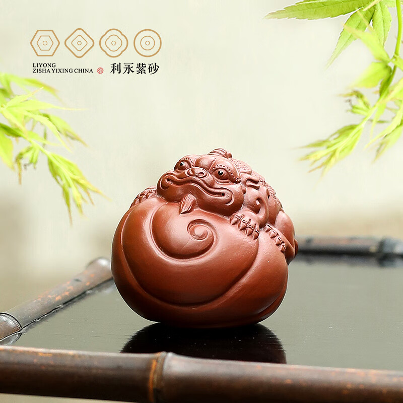 百年利永手工紫砂茶宠摆件原矿大红袍祥云貔貅茶玩雕塑功夫茶具配件 祥云貔貅