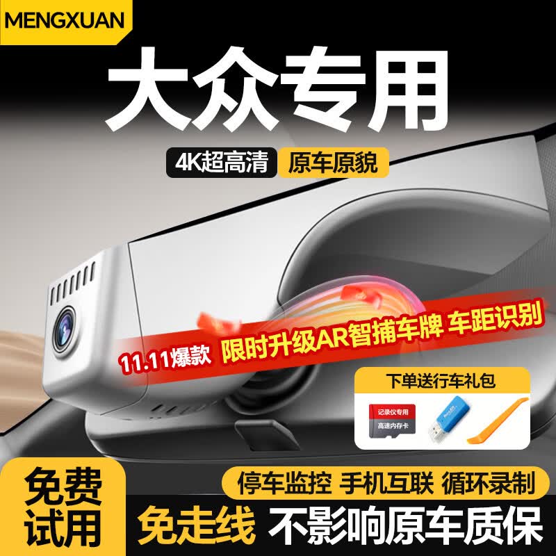 【自营】梦选(MENGXUAN)大众行车记录仪免走线朗逸帕萨特探岳速腾迈腾途观L原厂专车专用