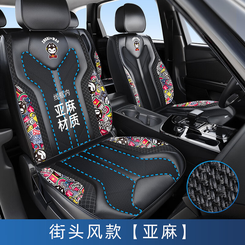 拽猫汽车坐垫全包围座套四季通用座垫车内座椅套车载安全座椅防磨垫 经典潮纹【亚麻】